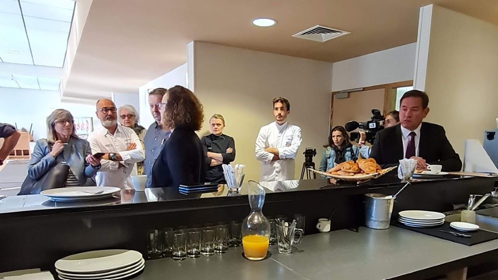 À l’appel du chef aindinois, une trentaine de restaurateurs ont témoigné de leur frustration lundi 30 mai à 7 h 30 devant le Cecof d’Ambérieu. « Hamburger au pain industriel et à la mayonnaise toute prête, ce type de sujet ne peut que conduire à une évolution négative de nos métiers ! » ont-ils dénoncé devant les grilles de l’établissement. « Il y a trop de décalage entre des émissions télévisées comme Top Chef et la réalité de ce que vivent nos apprentis. On se demande s’il n’y a pas derrière tout ça un lobby de grands groupes alimentaires », poursuit Frédéric Martin.