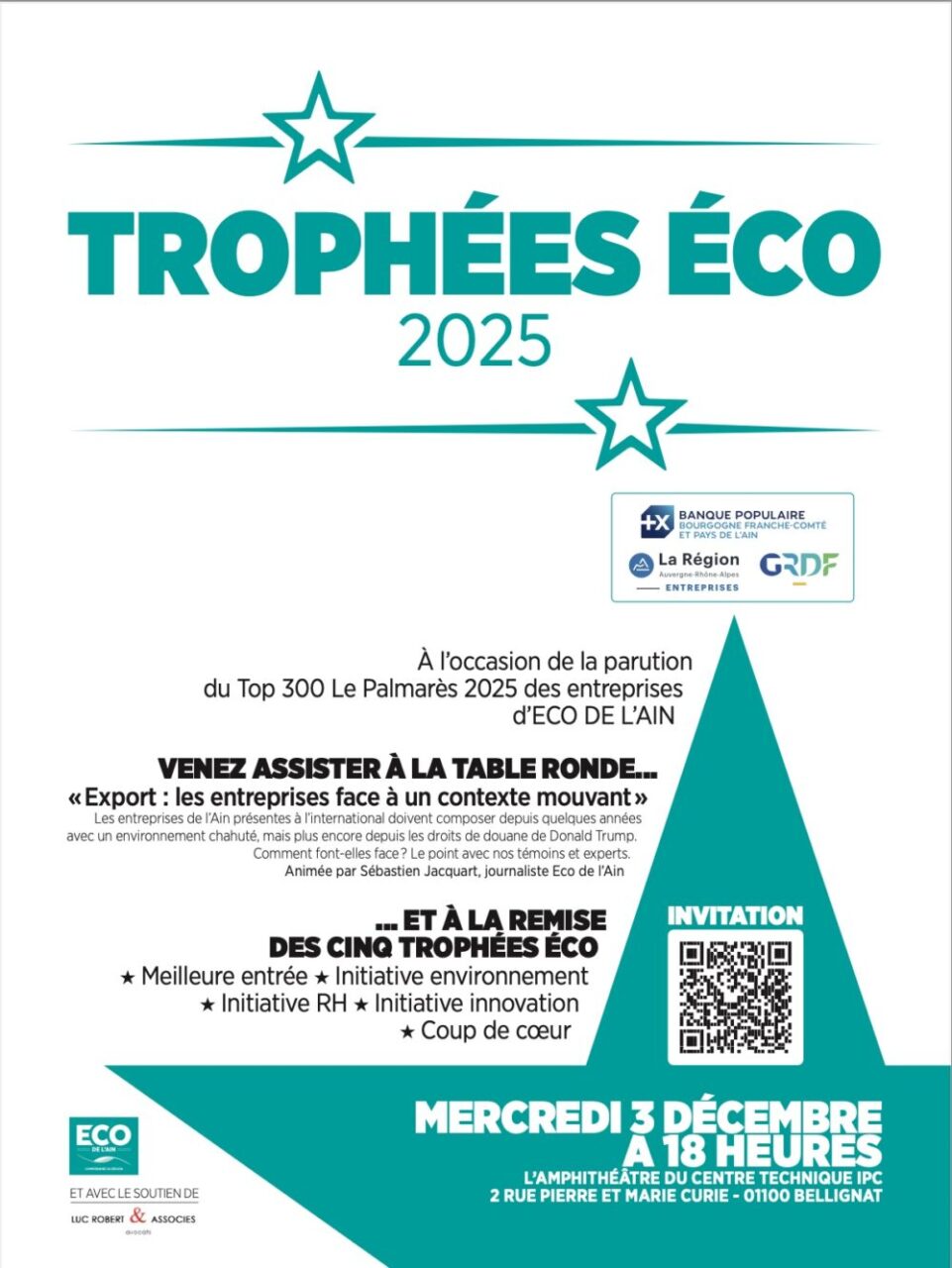 Save the date : mercredi 3 décembre 2025 à 18h, au Centre technique IPC à Bellignat (01).