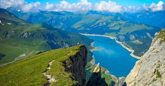 Depuis le refuge du Plan de la Lai (à deux km du Cormet de Roselend), l’approche se fait par un sentier raide traversant les alpages. Le début de l’itinéraire, à 1 813 m d’altitude, alterne entre dalle inclinée et passage vertical avant de dévoiler la vue imprenable sur le lac de Roselend. La deuxième partie devient plus aérienne, avec un rocher poli. Arrivé au sommet (2 360 m), le câble fait place à un sentier avec, en prime, un panorama à 360° entre lac de Roselend, barrage de la Gittaz et mont Blanc. Splendide ! Un câble permet alors de descendre dans le canyon qui abrite souvent des névés tard dans la saison. Un deuxième permet de remonter sur l’arête opposée.