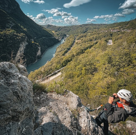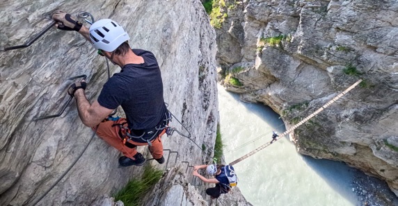 Au fur et à mesure de la montée qui s’échelonne sur 150 mètres, la vue se dégage et devient de plus en plus impressionnante. Au bout de 15 minutes, nous nous accordons une pause dans un recoin de la paroi, collés à la falaise. Là, nous comprenons mieux pourquoi les personnes sujettes au vertige peuvent avoir quelques problèmes. Le vide nous appelle lorsqu’on se retourne. La vue, composée du Fort du bas, du Rhône et du viaduc permettant aux trains de rejoindre la Haute-Savoie, est magnifique. Il faut au total 1 h 30 pour rejoindre l’arrivée, au fort. Une belle expérience qui laisse quelques courbatures, mais qui en vaut la peine. Un seul regret : le manque de diversité dans le cheminement, mis à part un pont de singe à l’arrivée.